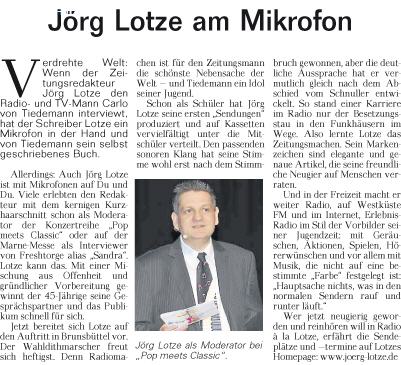 * Vom 13. bis 15. September 2013 bin ich als Moderator der großen Gewerbemesse in Brunsbüttel gebucht. Ich darf dort drei Tage lang nahezu das gesamte Bühnenprogramm auf der Hauptbühne präsentieren und freue mich auf tolle Gesprächspartner - allen voran auf eines meiner großen Radioidole - Carlo von Tiedemann.