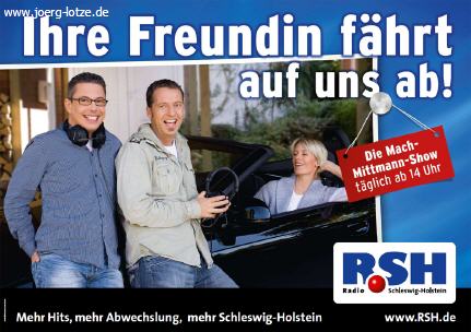 Eine sehr coole Werbung. Voller Mittmann und Balzi von R.SH. Hut ab, liebe Kollegen.... Danke an Radio Schleswig-Holstein für das "Zur-Verfügung-Stellen" des Fotos. http://www.rsh.de |